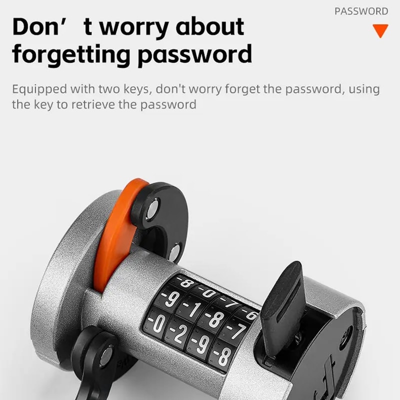 Das ArmaLoki Fahrradschloss verfügt über einen Notfallschlüssel zur Passwort-Wiederherstellung. Vergessene Kombinationen sind kein Problem mehr – Sie behalten immer Zugang zu Ihrem Eigentum.