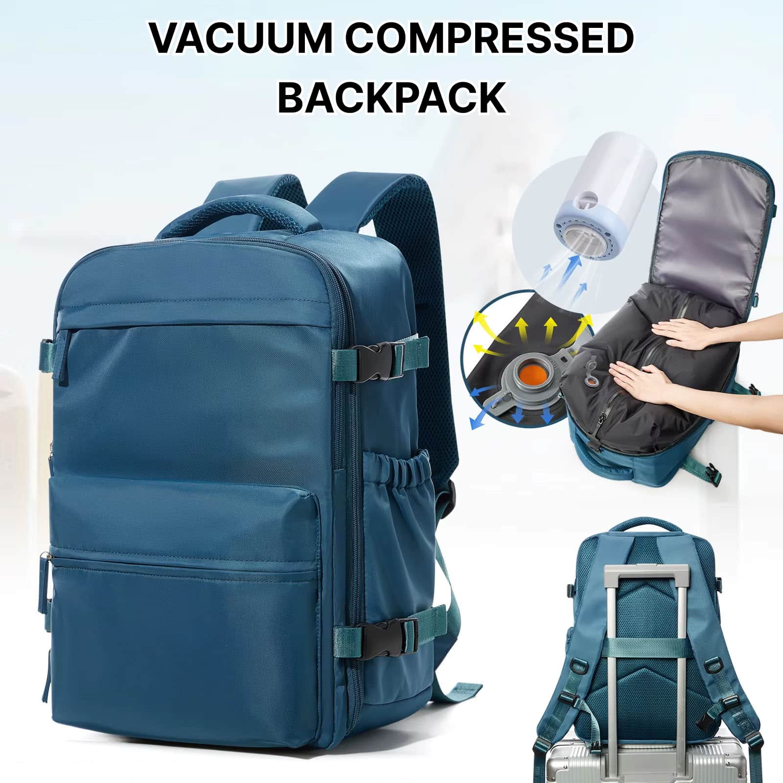 Dank des Kompressionssystems können Sie Kleidung für 3-5 Tage, Laptop, Toilettenartikel und weitere Reiseutensilien unterbringen – etwa doppelt so viel wie in einem herkömmlichen Handgepäckrucksack gleicher Größe.