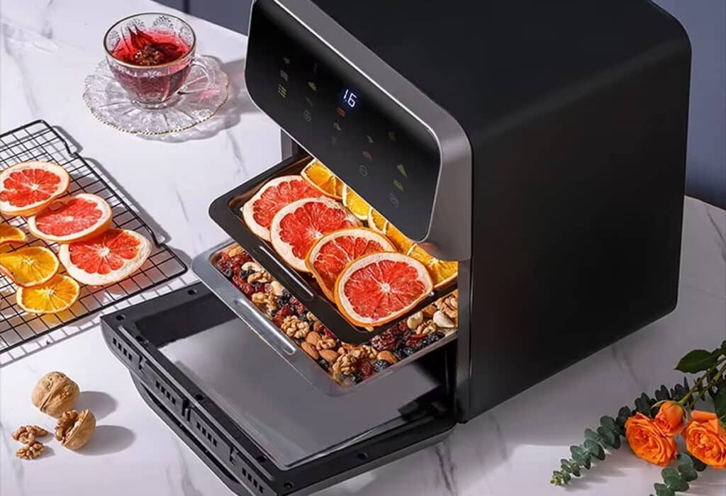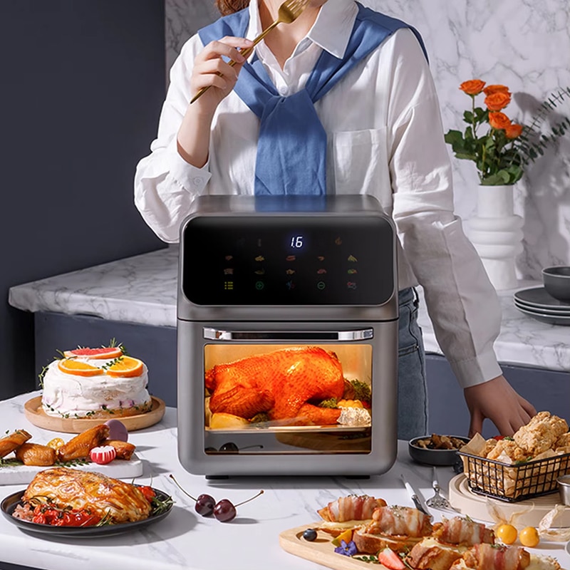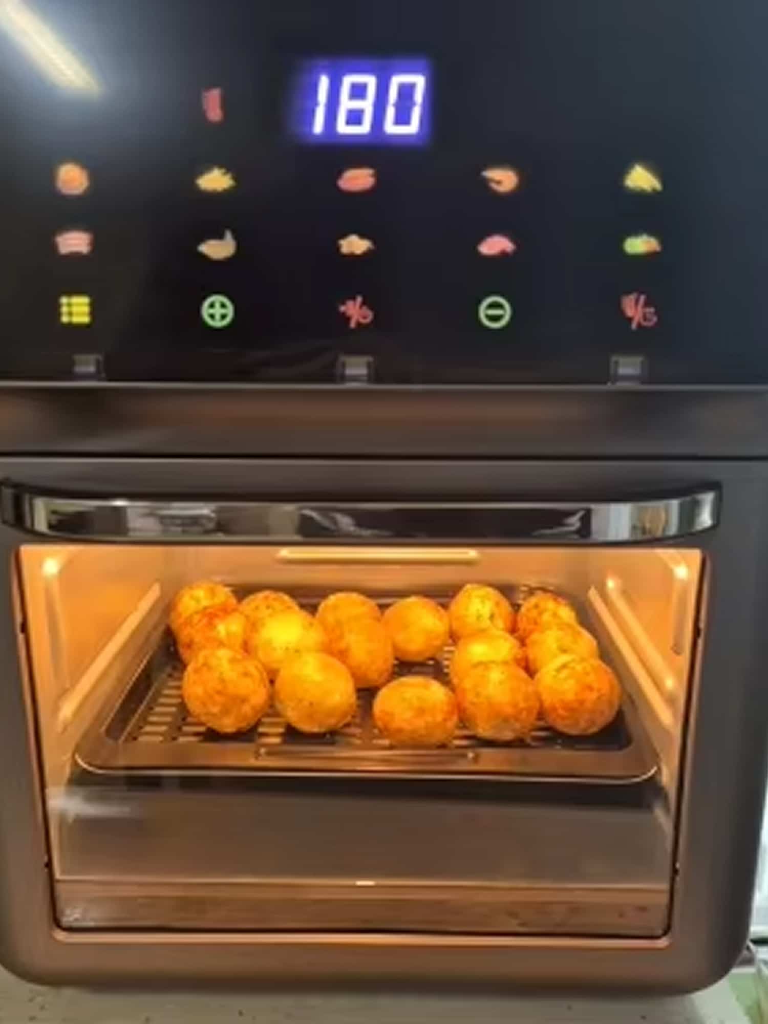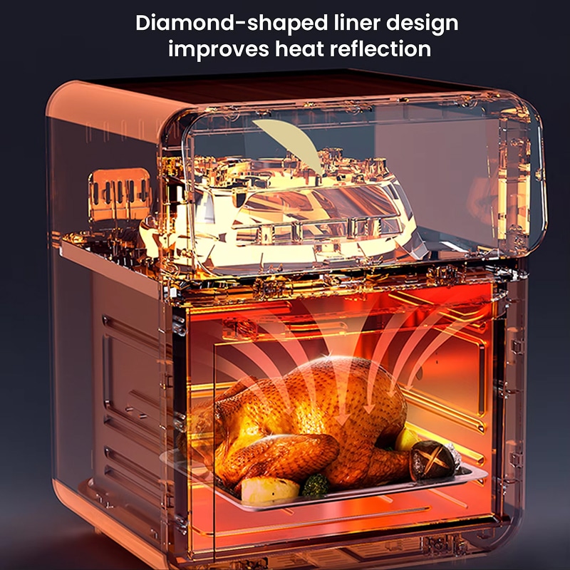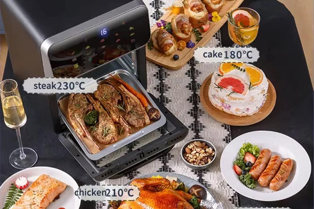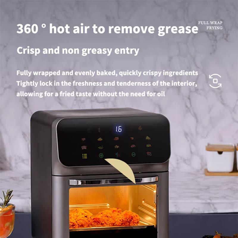 Dank des großzügigen 10L Fassungsvermögens können Sie verschiedene Zutaten gleichzeitig garen. Die gleichmäßige Heißluftzirkulation der Crisvora Heißluftfritteuse sorgt für perfekte Ergebnisse bei allen Komponenten Ihrer Mahlzeit.