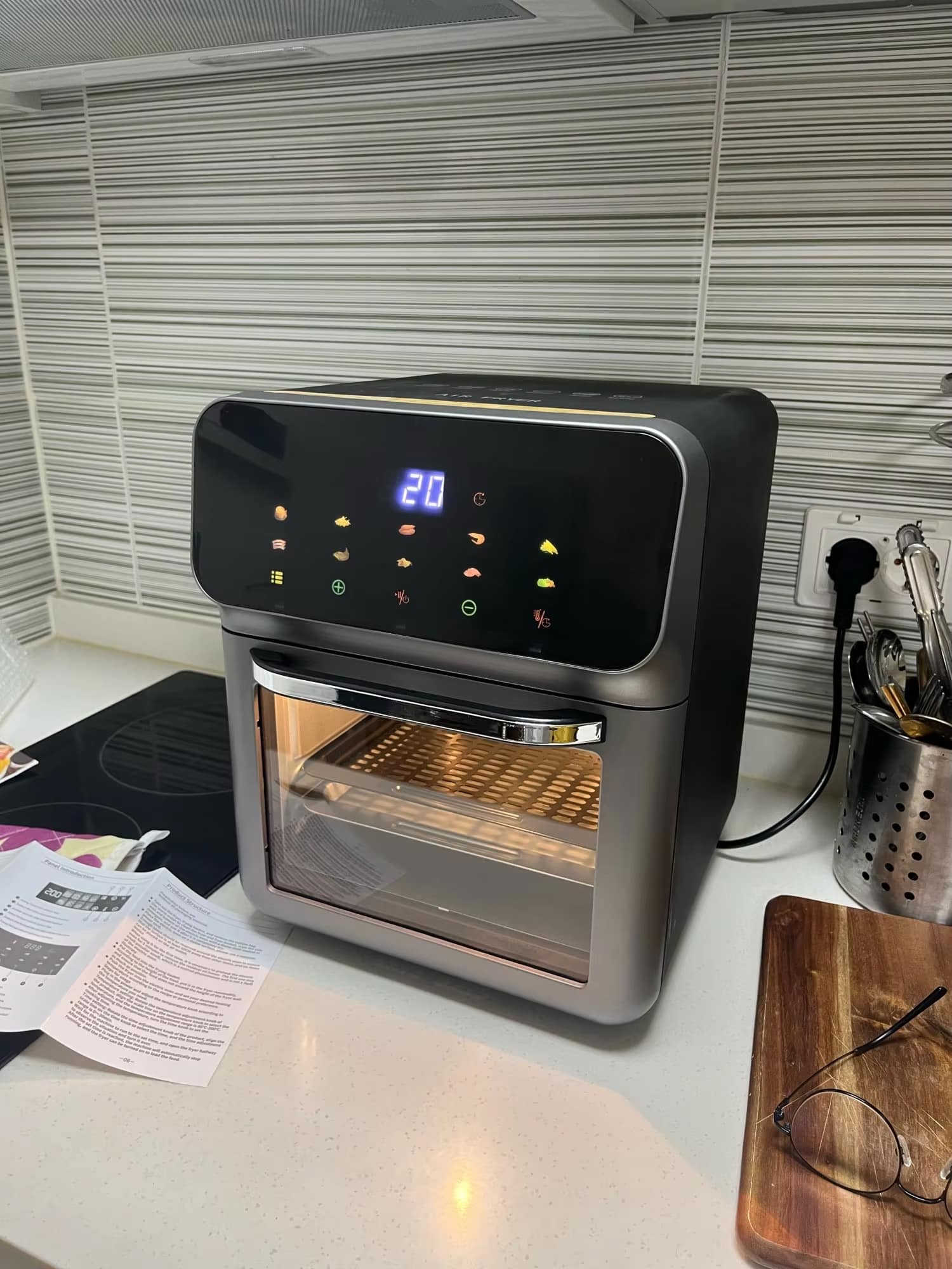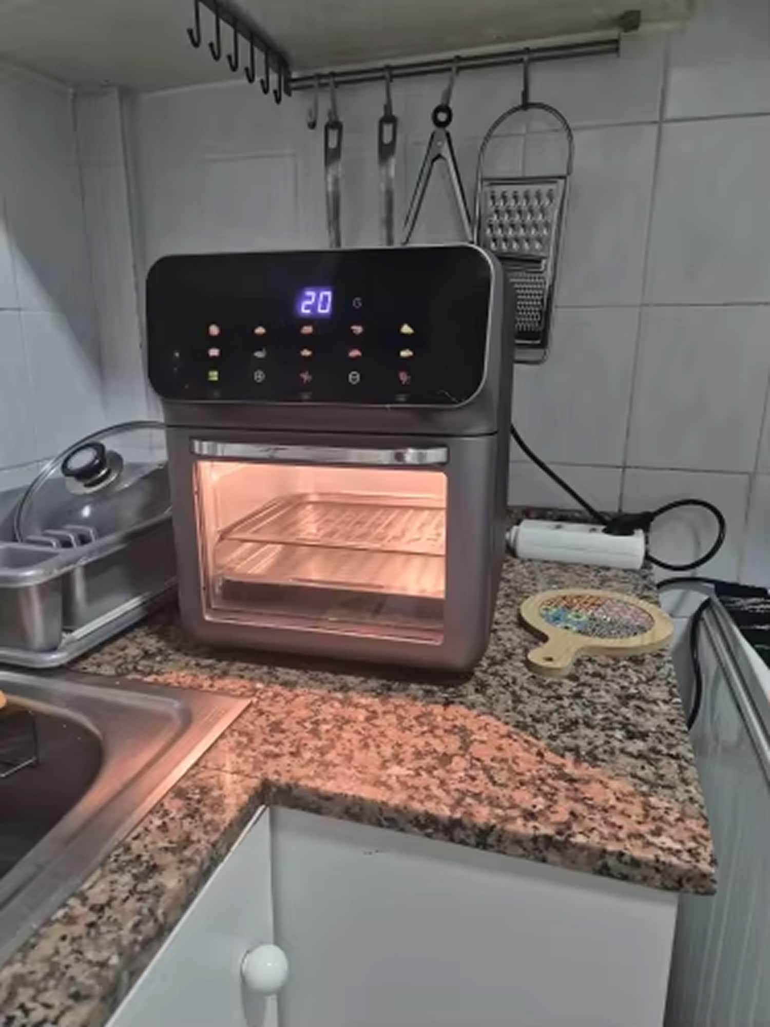 Die Crisvora Heißluftfritteuse hat kompakte Abmessungen und passt problemlos auf jede Standardarbeitsplatte. Trotz des großen 10L Innenraums nimmt sie überraschend wenig Platz ein und lässt sich bei Bedarf leicht verstauen.