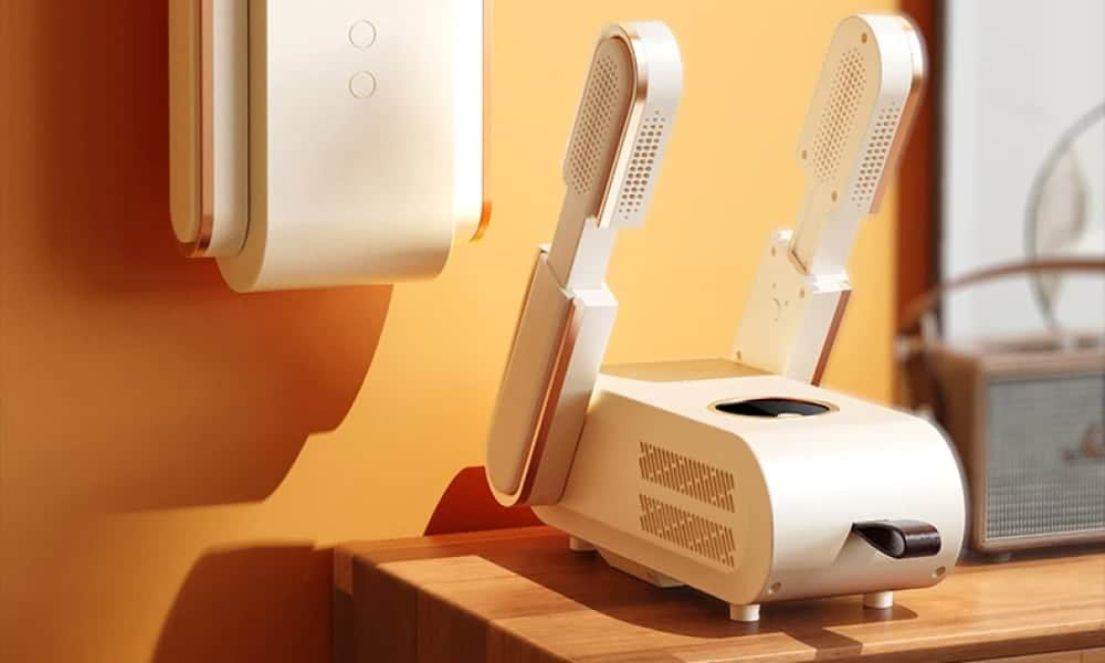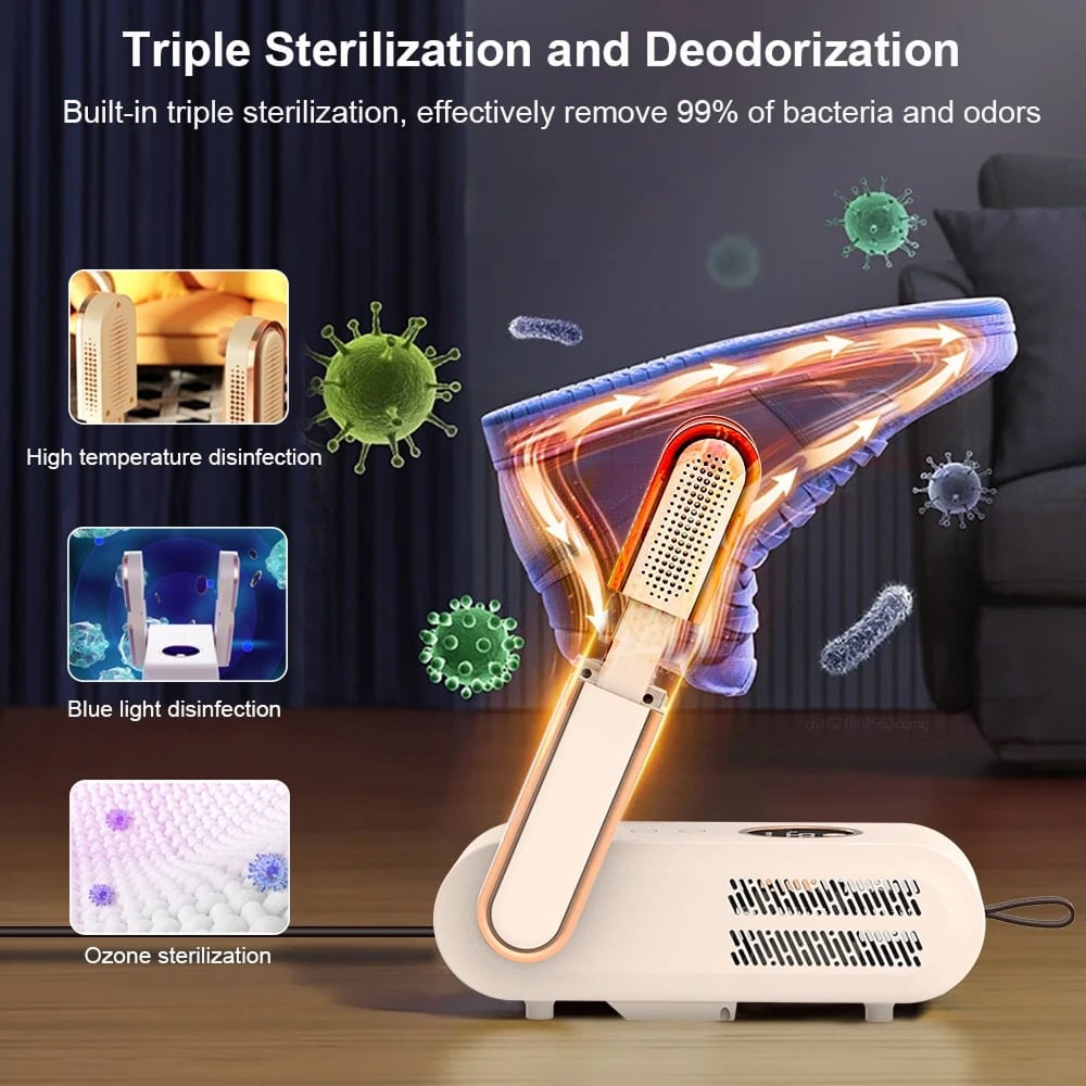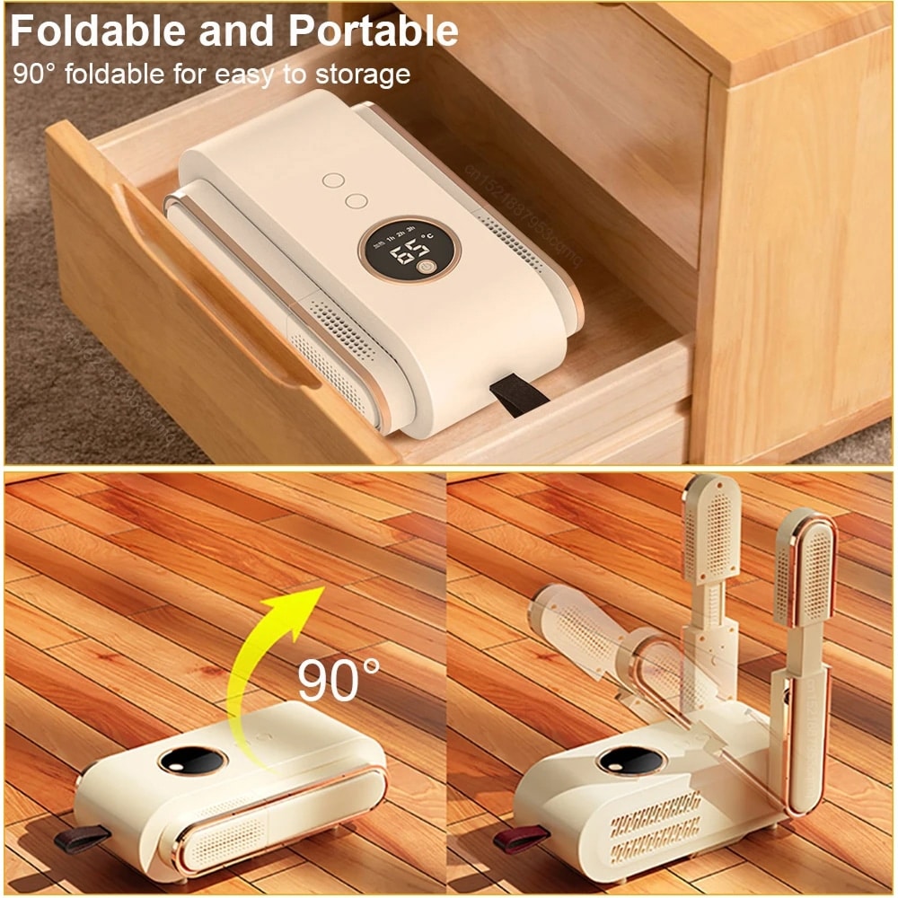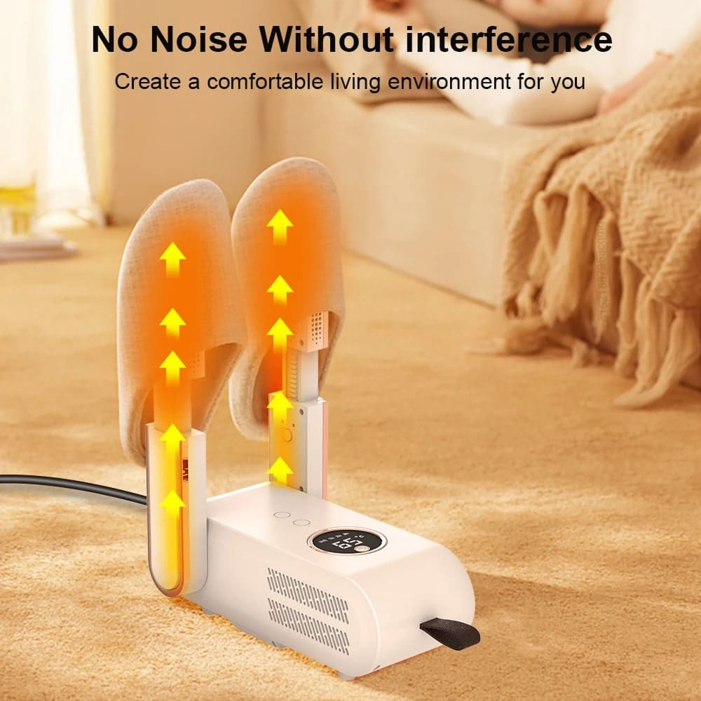 Die Trocknungszeit hängt vom Feuchtigkeitsgrad ab. Leicht feuchte Schuhe sind in 15-20 Minuten trocken, stark durchnässte Schuhe benötigen 30-45 Minuten für optimale Ergebnisse.