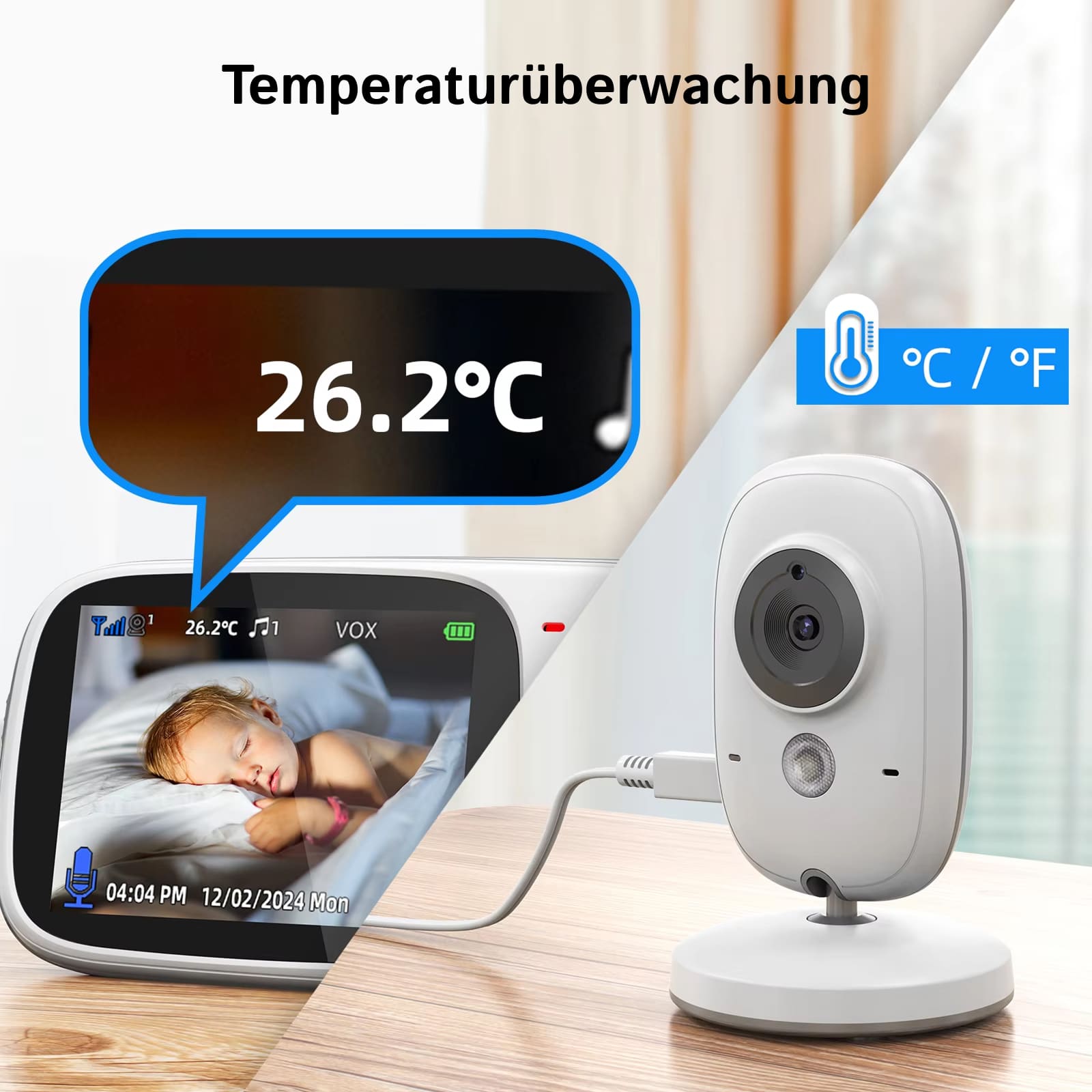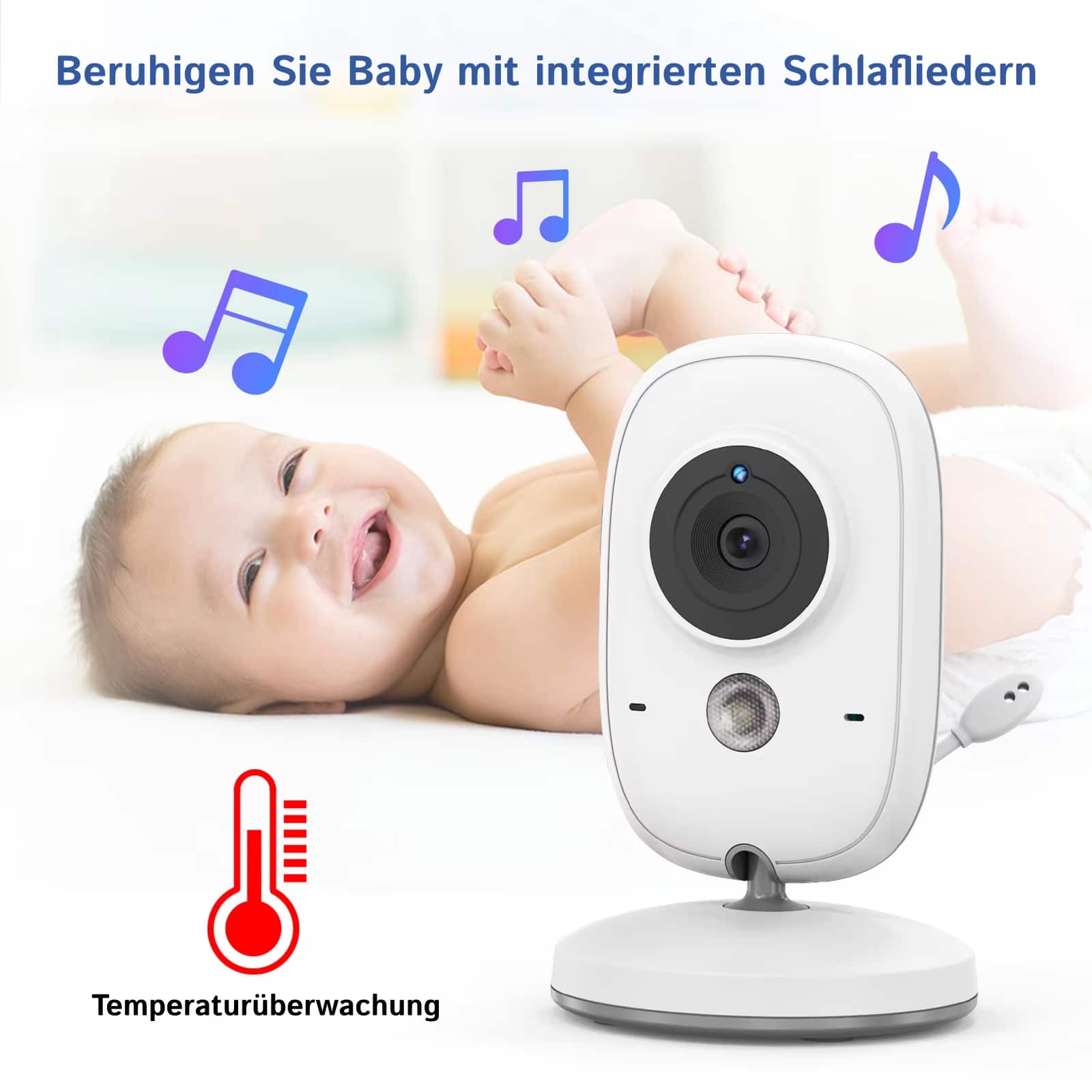 Erleben Sie die perfekte Kombination aus Sicherheit und Komfort mit Temperaturüberwachung, Zwei-Wege-Kommunikation und beruhigenden Schlafliedern, die eine ideale Umgebung für Ihr Baby schaffen.