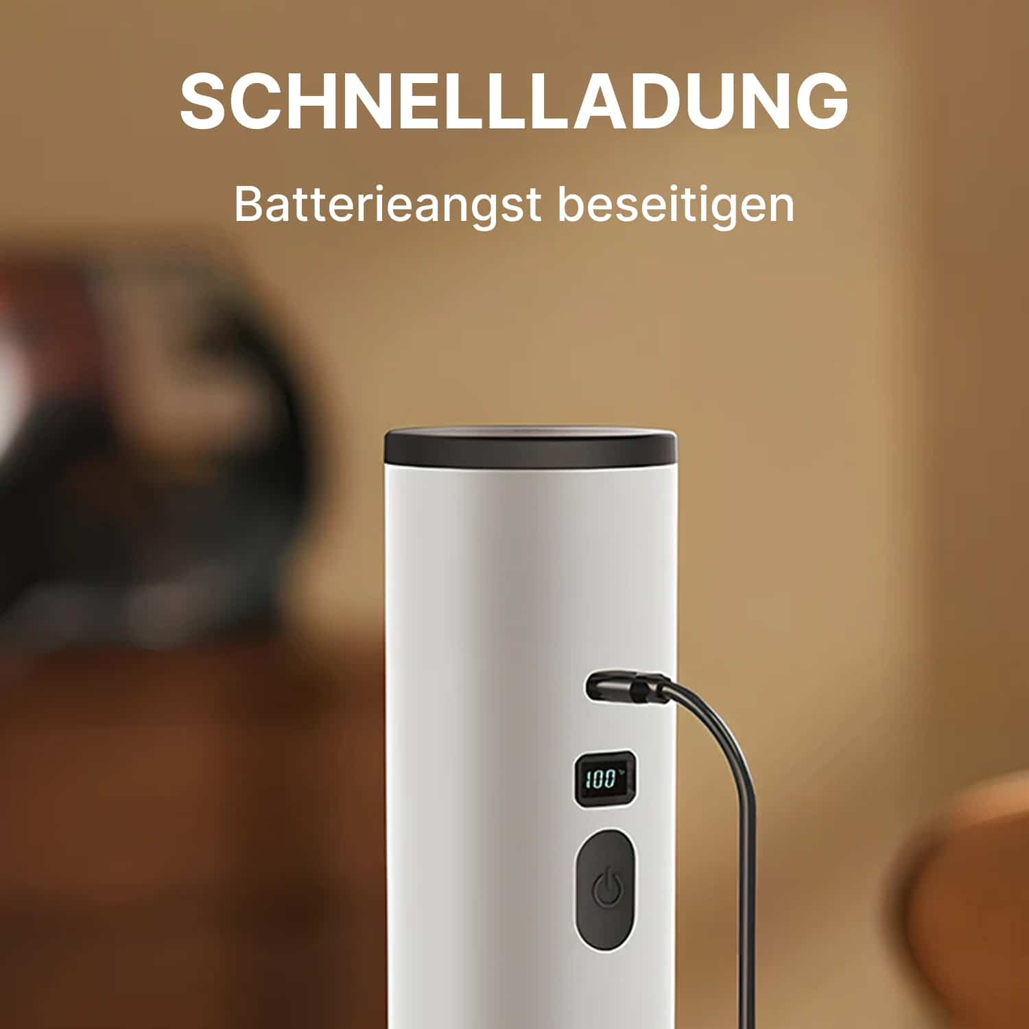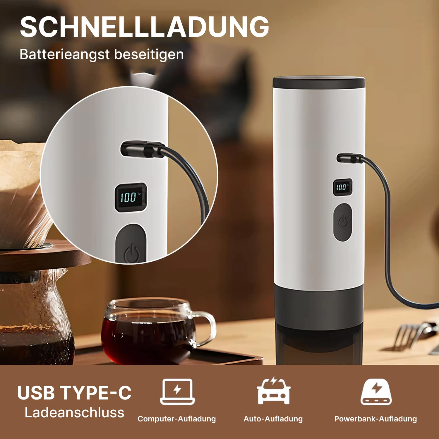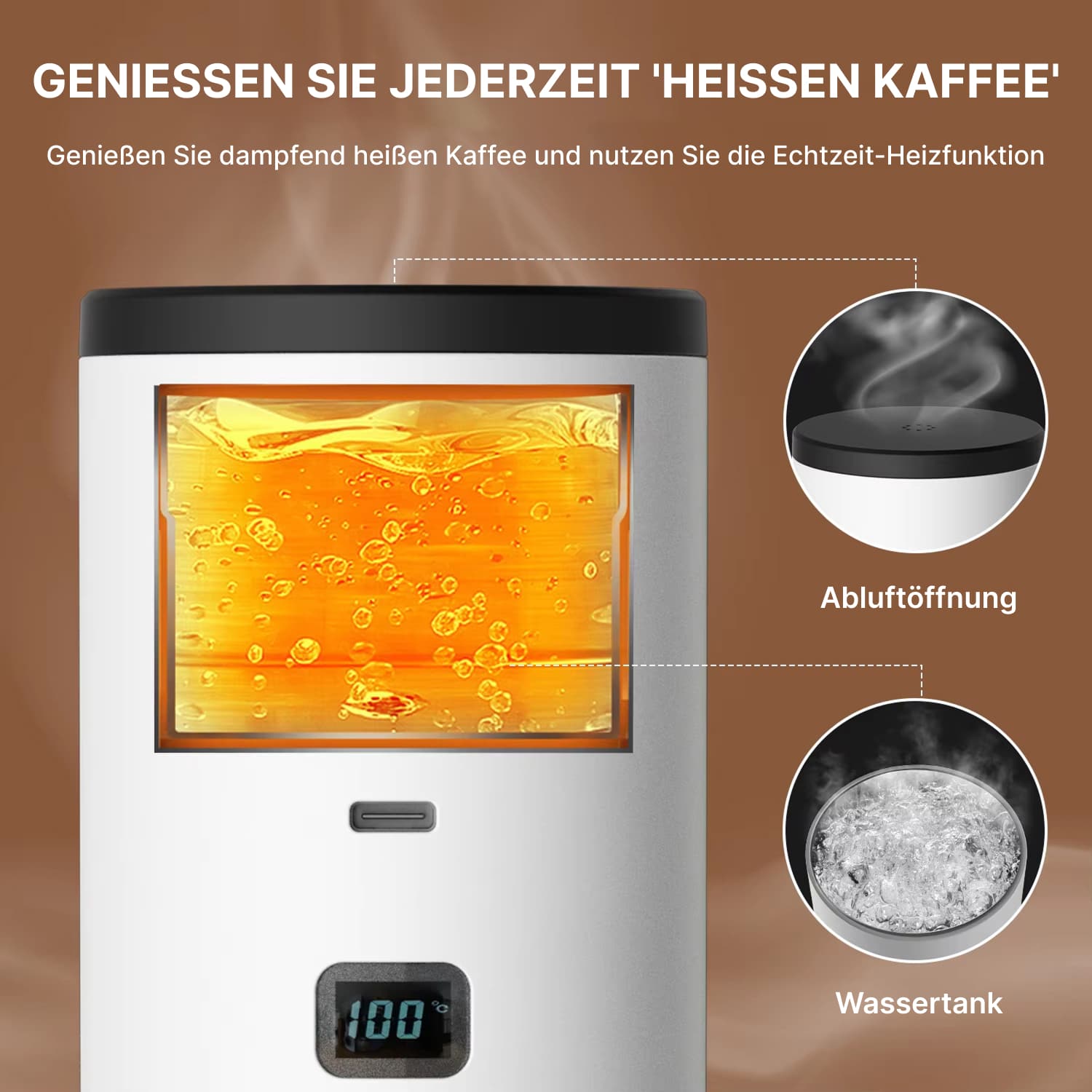 Genießen Sie die uneingeschränkte Freiheit, völlig ohne Kabel. Die integrierte Heizfunktion und der leistungsstarke Akku ermöglichen es Ihnen, jederzeit und überall heißen Kaffee zu genießen, ohne nach einer Steckdose suchen zu müssen.