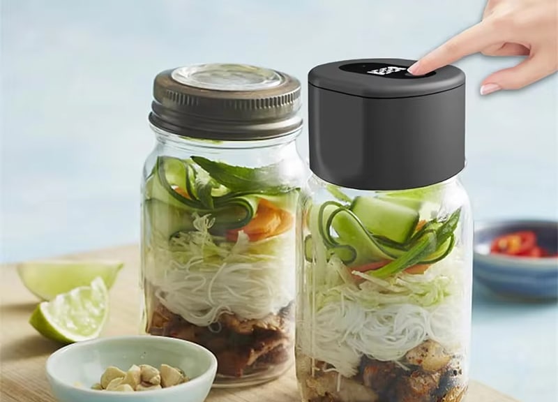 Der LockNJar Vakuumierer versiegelt Fleisch, Fisch, Gemüse, Obst, Käse, Nüsse und Backwaren perfekt. Auch empfindliche Lebensmittel werden schonend behandelt und optimal konserviert.
