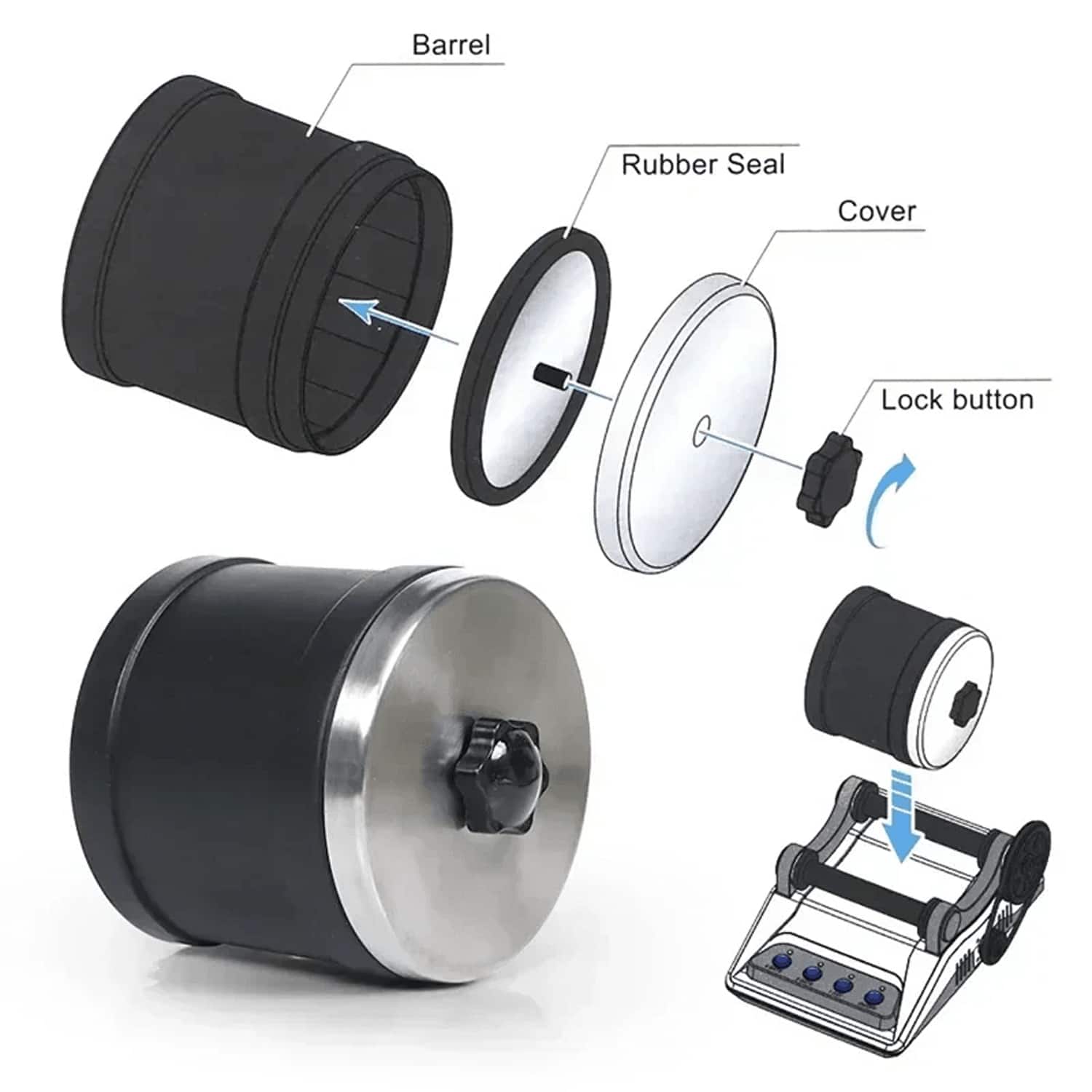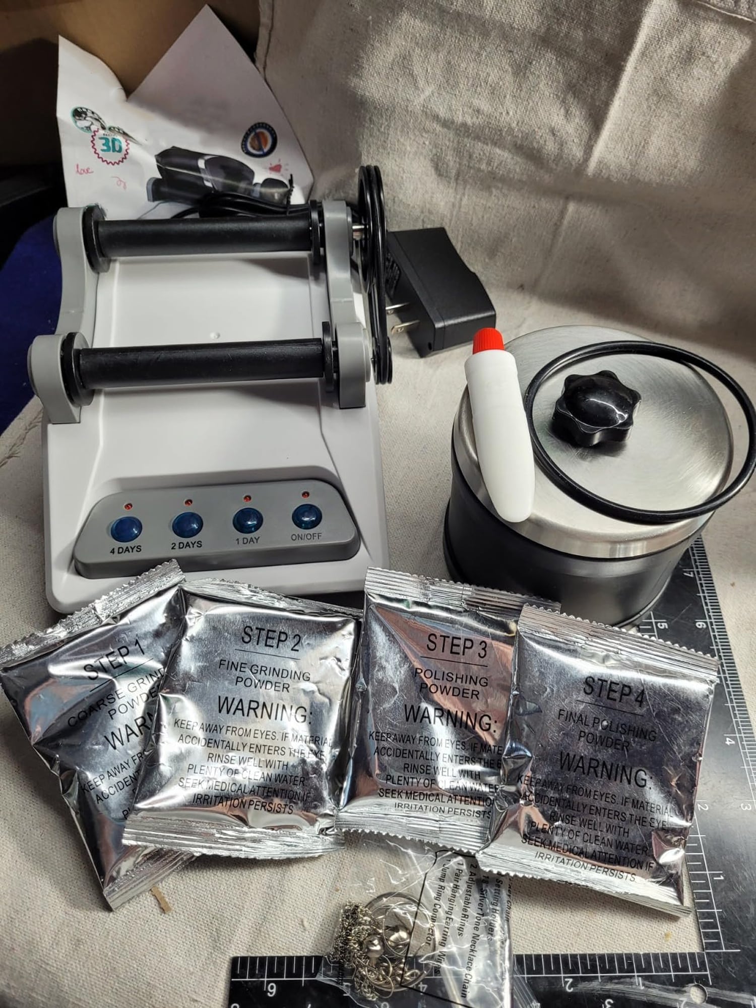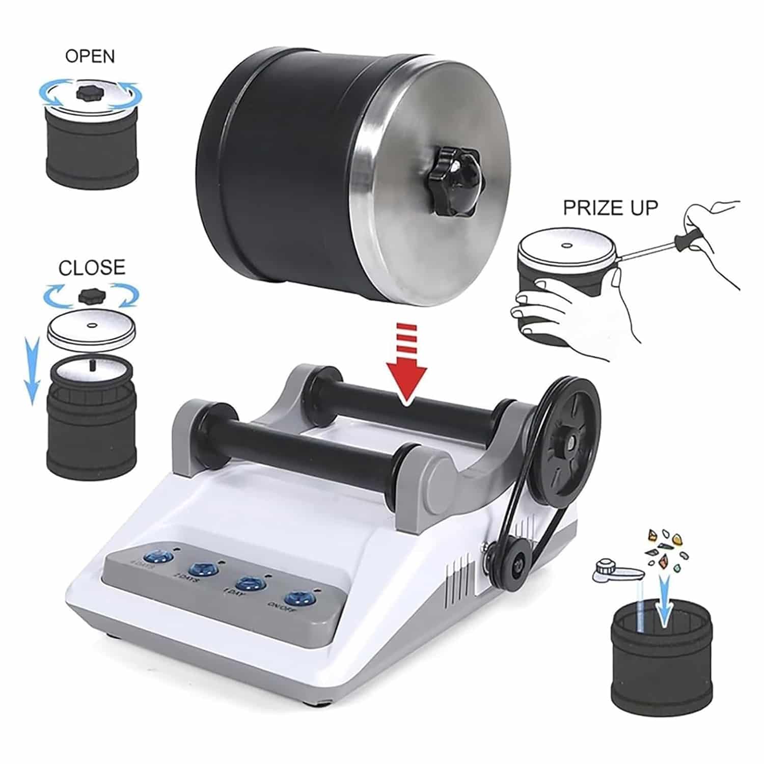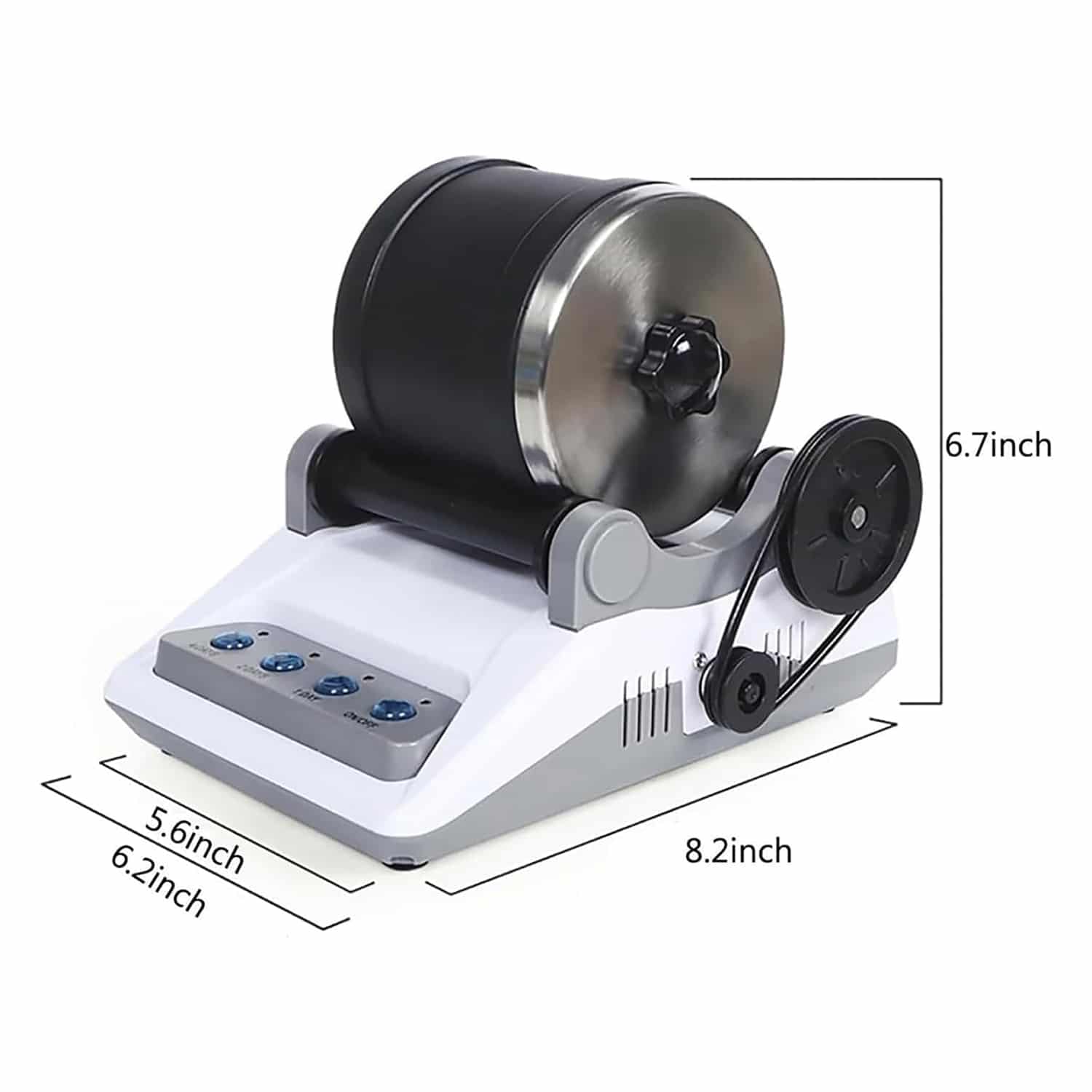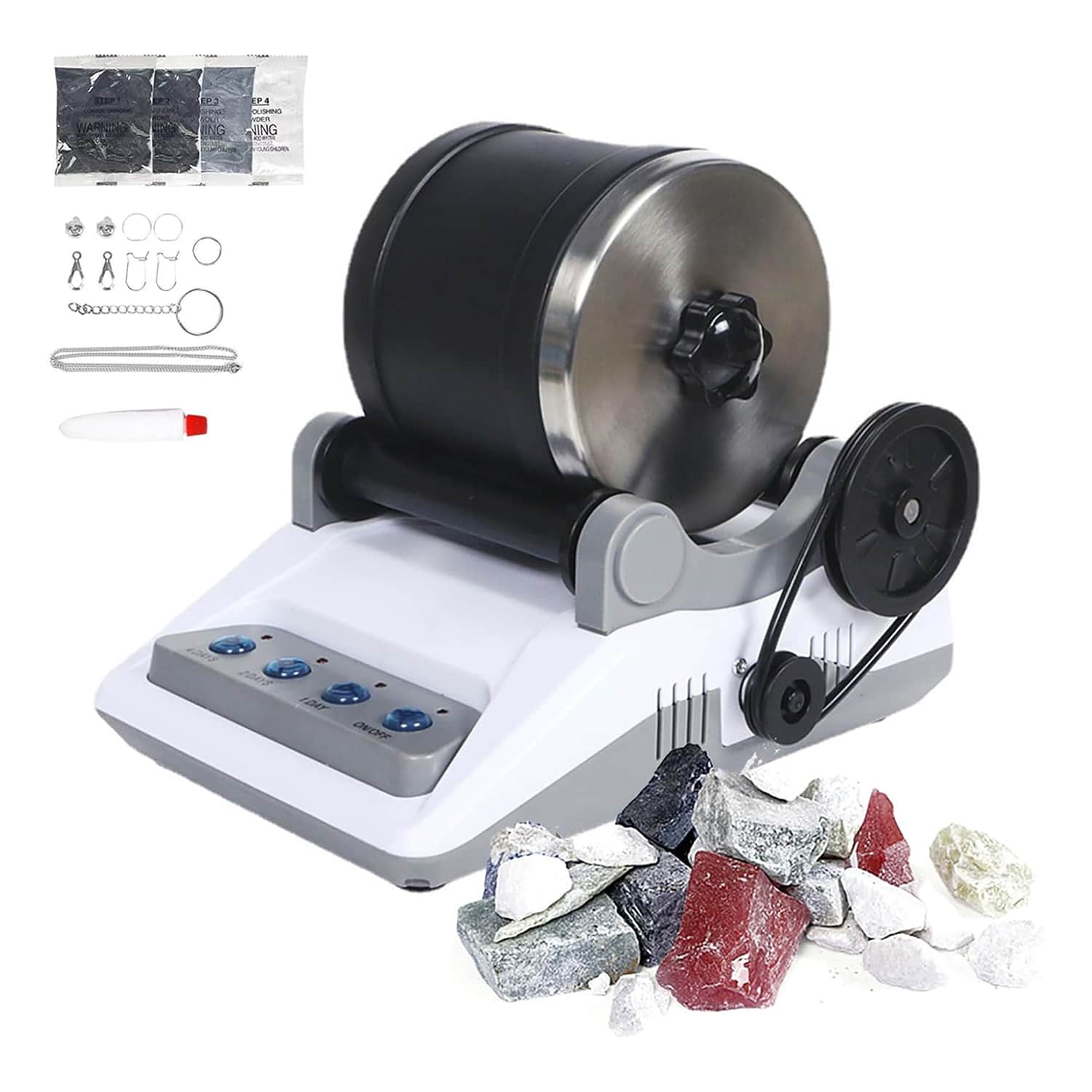 Die Trommel fasst etwa 0,5-1 kg Steine je nach Größe. Für beste Ergebnisse füllen Sie sie zu etwa 70% mit Steinen.