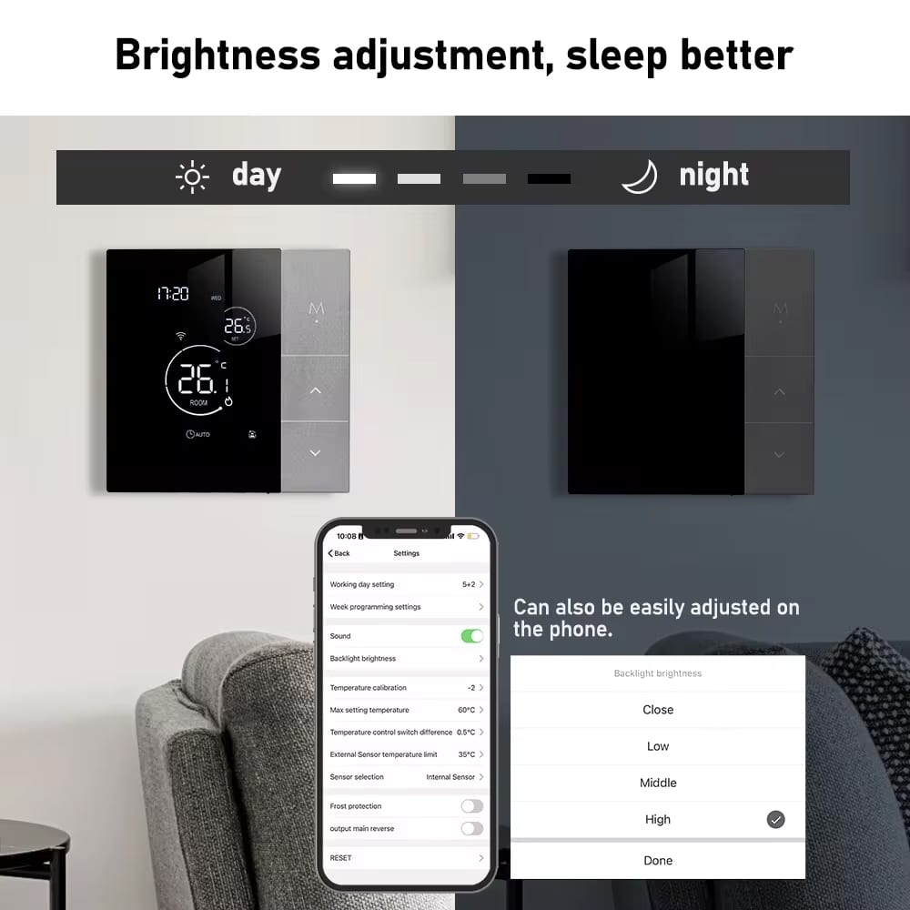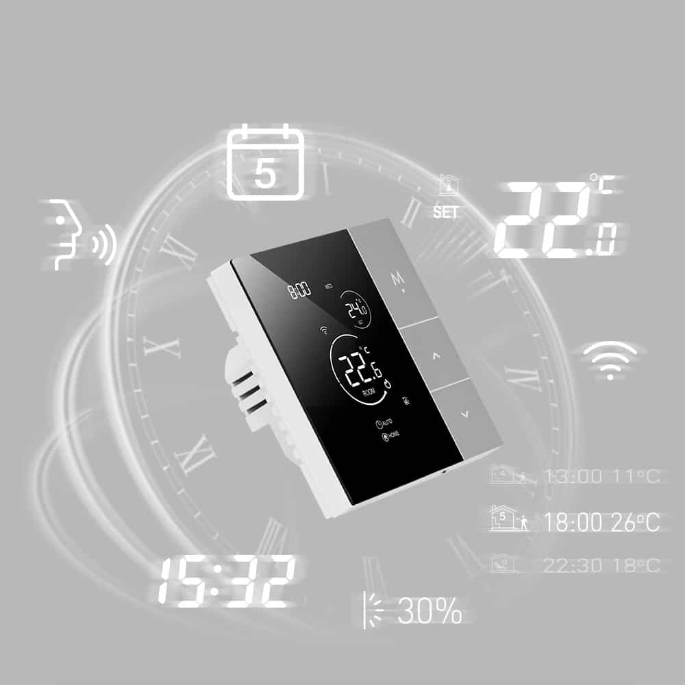 Der Naresync Intelligenter Thermostat misst mit einer Genauigkeit von ±0,5°C und gewährleistet präzise Temperaturregelung für konstanten Komfort ohne störende Schwankungen.