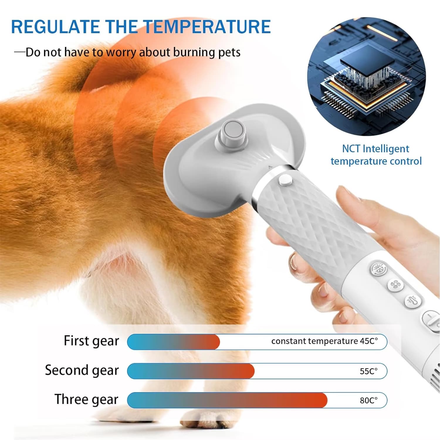 Nein, das intelligente NTC-System reguliert die Temperatur automatisch auf sichere 38,9°C. Durch den ständigen Wechsel zwischen warmer und kühler Luft ist Überhitzung ausgeschlossen, selbst bei längerer Anwendung auf empfindlichen Hautpartien.