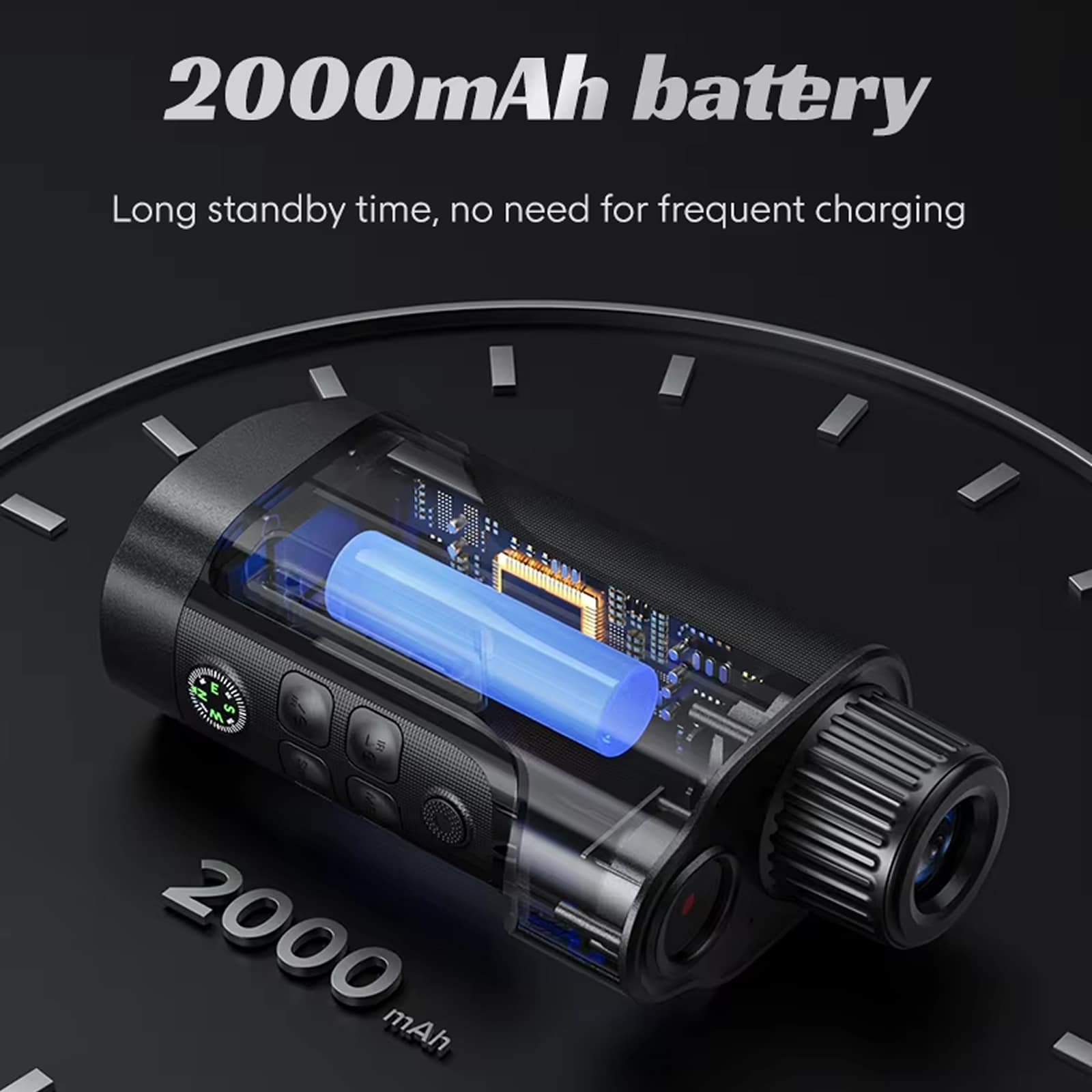 Der 2000mAh-Akku bietet etwa 3 Stunden durchgehenden Betrieb. Eine vollständige Aufladung dauert ebenfalls circa 3 Stunden für schnelle Einsatzbereitschaft.