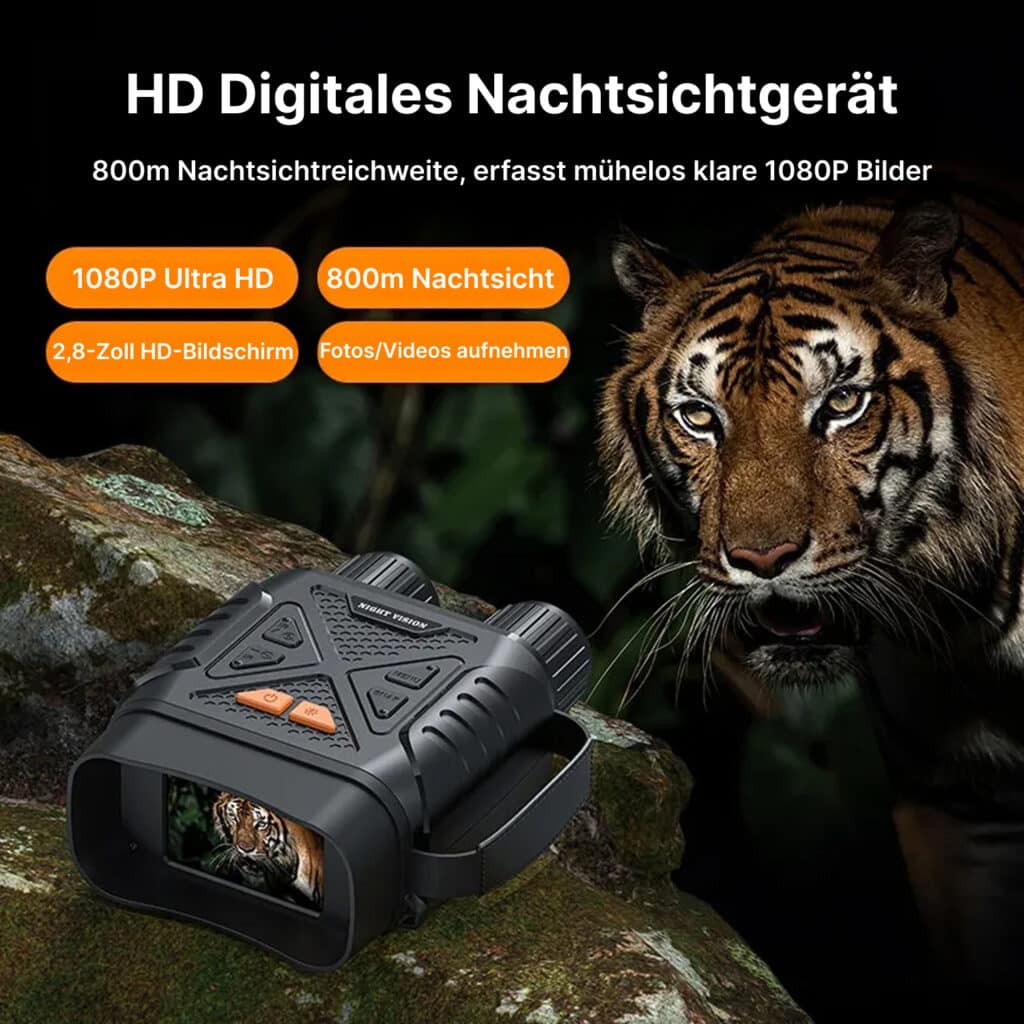 Mit einer beeindruckenden Reichweite von 800 Metern ermöglicht der SpexNocti Feldstecher Nachtsicht selbst in absoluter Dunkelheit klare Beobachtungen. Perfekt für Wildtierbeobachtung, Sicherheitsüberwachung und nächtliche Outdoor-Aktivitäten.