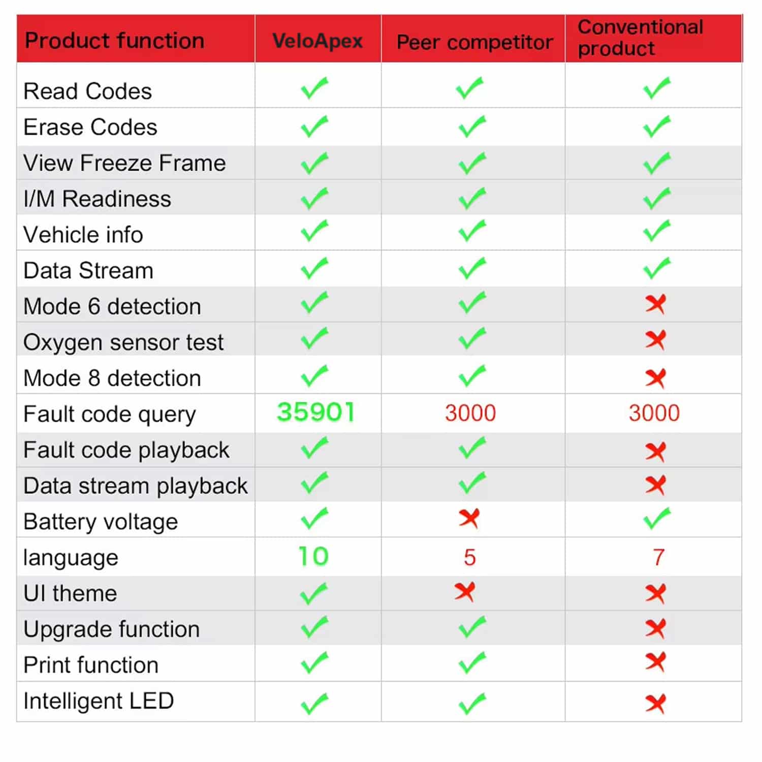 Ja, VeloApex kann Fehlercodes auslesen, löschen und die Motorwarnleuchte zurücksetzen. Nach der Behebung des Problems können Sie die Codes löschen und überprüfen, ob das Problem dauerhaft gelöst wurde.